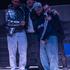 Strobe effects are used in the performance.