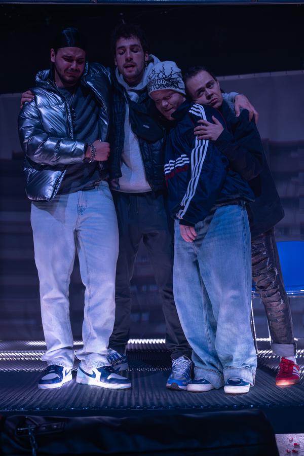 The first Czech adaptation of last year's Norwegian literary sensation, dubbed Trainspotting for Generation Z. The themes of the crisis of masculinity, the deteriorating mental health of young people, and the pitfalls of migration are explored by the 19-year-old author in a formally and linguistically experimental text inspired by the clippiness of social media and rap. The show is directed by young director Gabriela Gabašová.