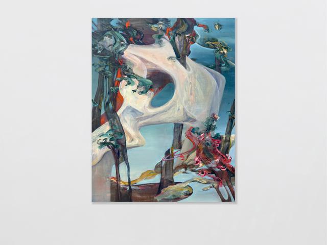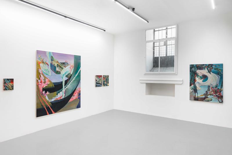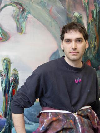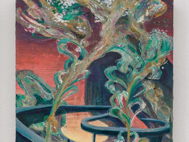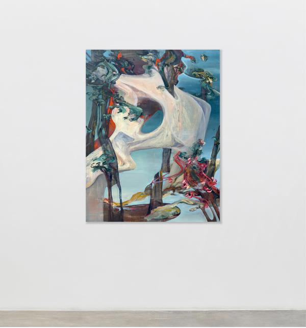 Clément Bedel (b. 1993) is a French painter based in Vienna, Austria. He creates hybrid compositions that capture suspended moments between collapse and rebirth, depicting a world in mutation where streams of intense color, often symbolic of pollution, merge with plants, trees, and brutalist structures, disrupting linear time and evoking vast ecological and existential scales. With these works, Bedel addresses the human condition not through the human body itself but through the consequences of destroying our own earthly conditions of existence, revealing fragmented landscapes, scarred yet adaptive and continuously in motion.