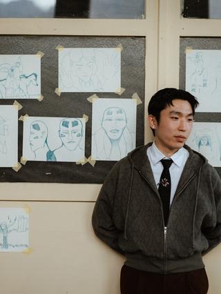 Marty Quell (b. 1999) is a multidisciplinary artist, writer, and performer from Ireland, now based in London. With a background in theatre, he moved to London at 21 to pursue acting. Currently studying Illustration and Visual Media at the University of the Arts London, Marty also writes stand-up comedy, theatre, and screenplays. His work weaves together self-reflection, space awareness, and the use of abnormality and masked mysteries as layers behind simple memories and thoughts. His practice spans writing, painting, and filmmaking.